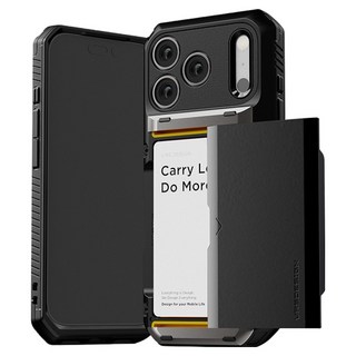 가장 주목할 부분은 카드 수납 공간입니다. 반자동으로 설계된 이 슬라이드 부분은 약간의 힘만으로 부드럽게 열리고 닫히며, '들썩들썩거려서 금방 망가지던' 기존 슬라이드 케이스의 단점을 보완했습니다. 3~4장의 카드를 수납해도 여유롭다는 평가가 많아, 평소 여러 장의 카드나 현금을 휴대하는 분들께는 최고의 선택입니다.